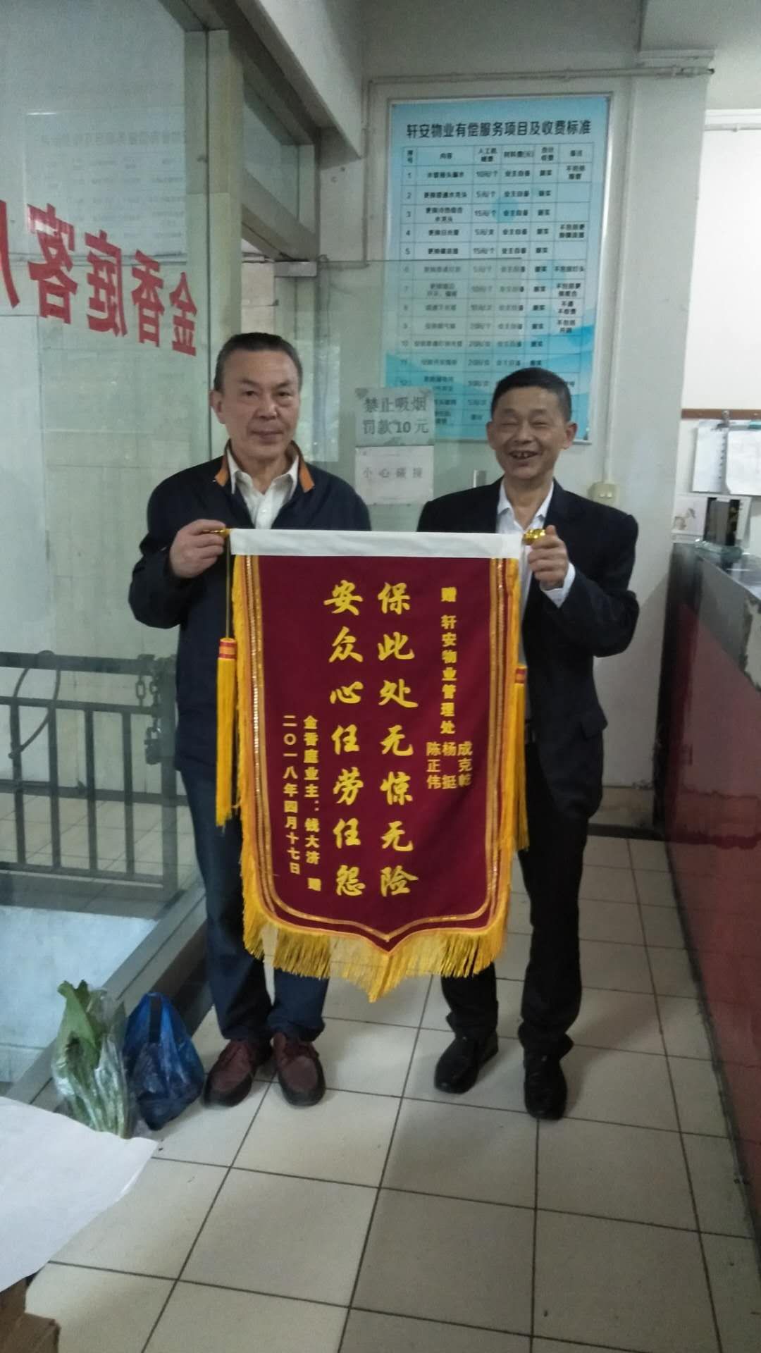 2017年12月13日,軒安物業(yè)金香庭管理處收到了一封由43號門面店主手寫的感謝信,感謝管理處保安魏弟剛同志盡職盡?責、用心服務的態(tài)度。